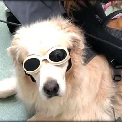 dog wearing goggles for laser therapy treatment